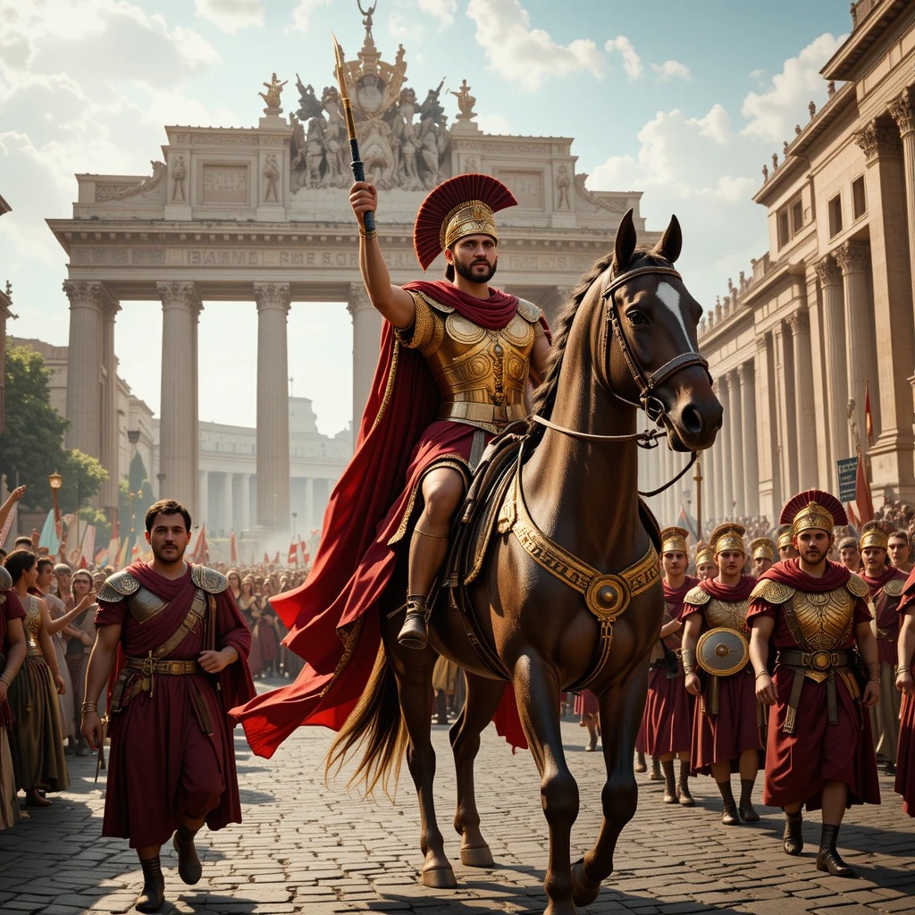 고대 로마에서 위대한 승리를 거둔 장군은 "트라이엄프(triumph)"라는 성대한 개선 행진을 할 수 있는 권리를 얻었습니다. 이는 단순한 축제가 아니라 국가적인 이벤트였죠. 말 그대로 로마 시민 전원이 거리로 쏟아져 나와 장군을 찬양했습니다.