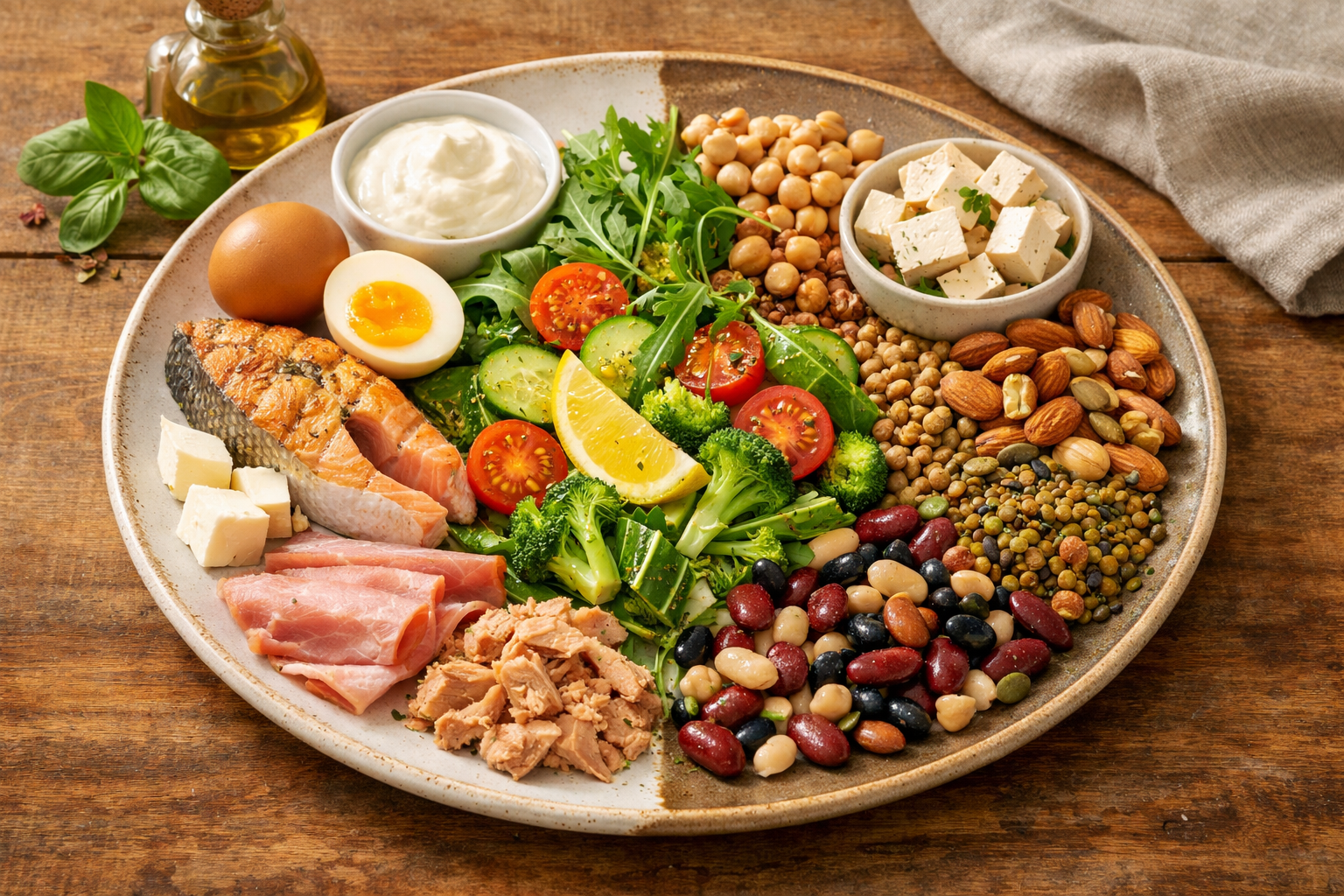 동물성(유청, 달걀, 살코기 등)은 일반적으로 필수아미노산 구성과 류신(Leucine) 밀도도 좋아서 근합성 트리거로 유리한 편입니다. 식물성(콩/두부/렌틸/견과/곡물 등)은 식이섬유·미네랄·불포화지방 같은 '몸의 바닥'을 깔아주는 요소가 강합니다.